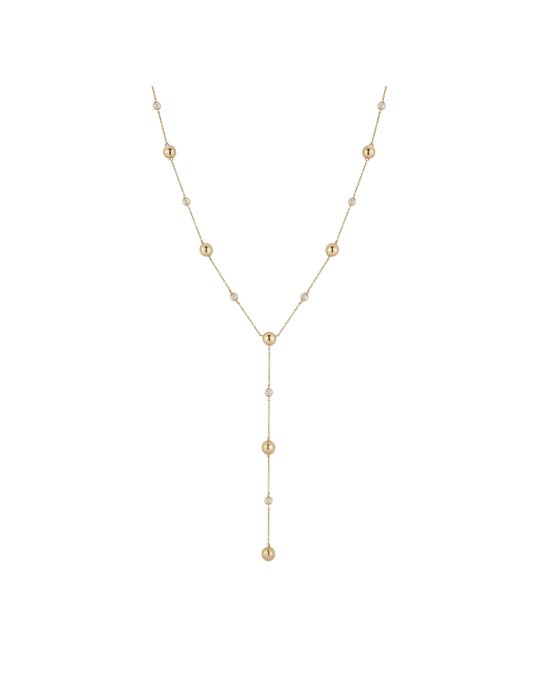 Gracefully modern, Dana Rebecca’s Poppy Rae Lariat necklace features 0.20 carats of shimmering diamonds cascading along a sleek 18″ strand of 14K yellow gold. Its minimalist silhouette and refined sparkle evoke effortless sophistication—perfect for layering or solo wear, this lariat is a timeless accent for any elegant ensemble.