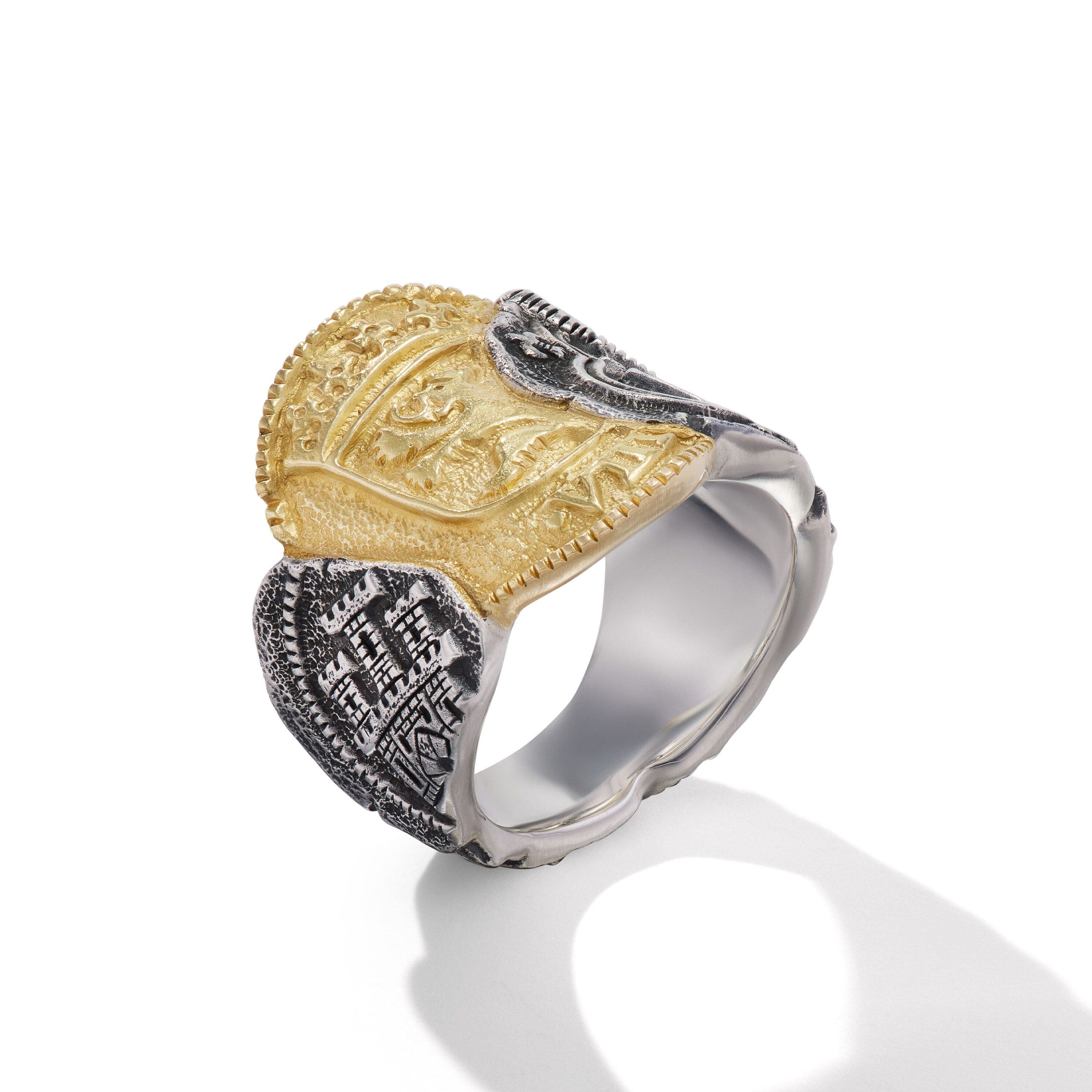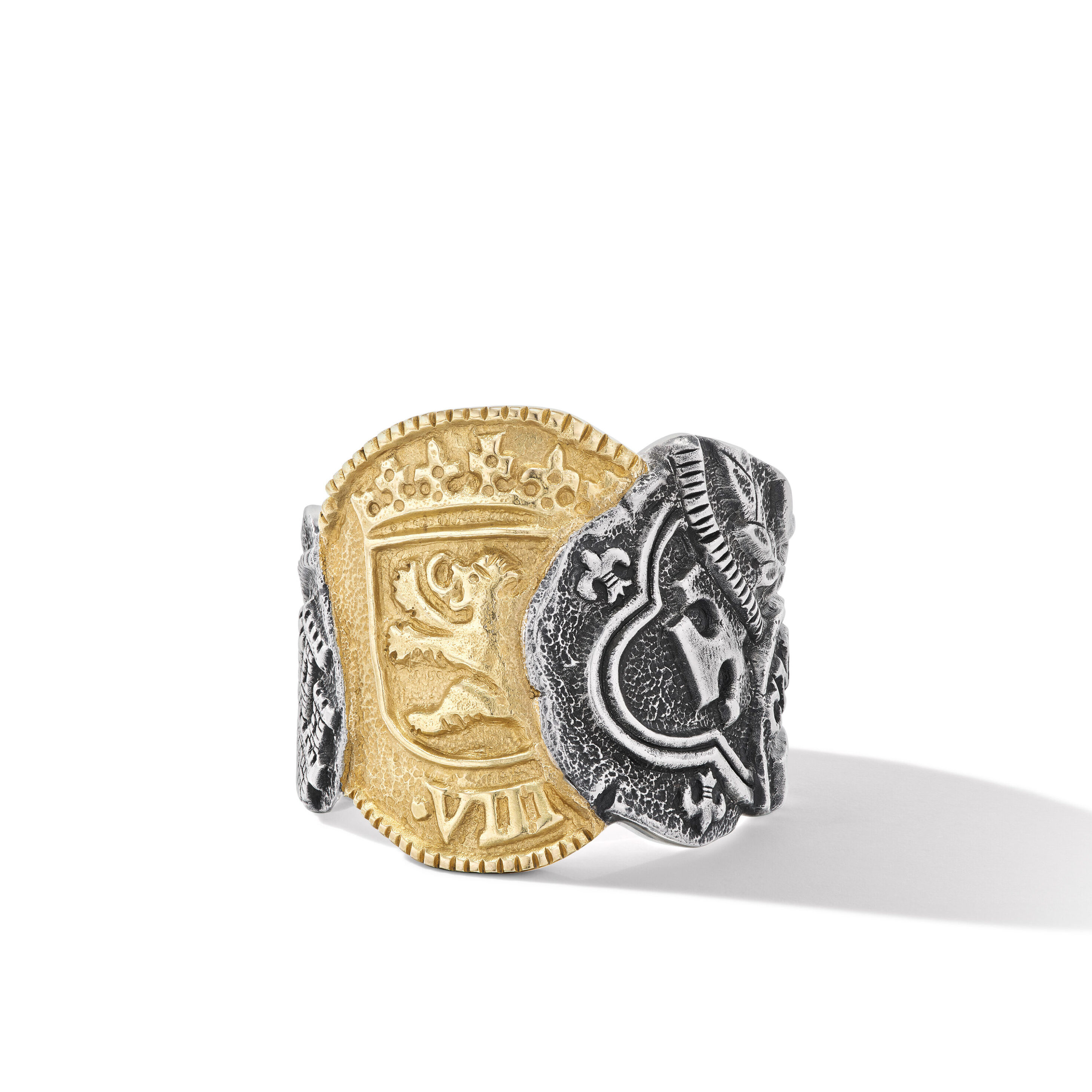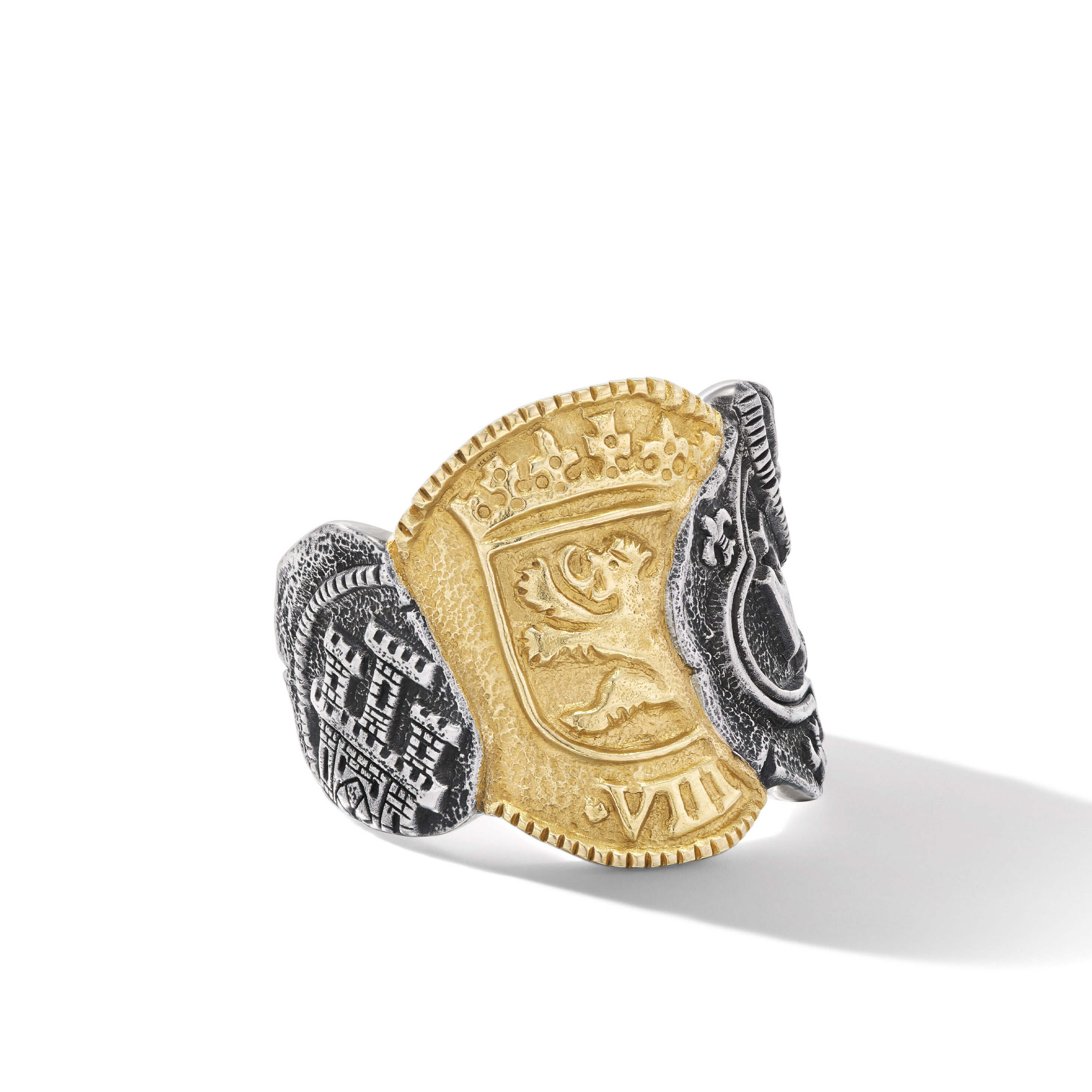 Shipwreck Coin Signet Ring in Sterling Silver with 18K Yellow Gold, 24mm