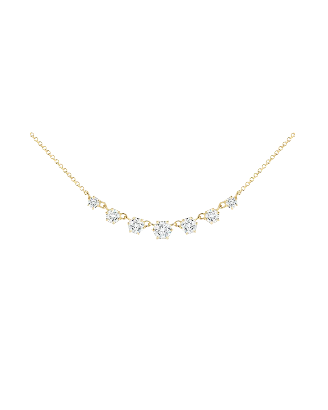 Timelessly radiant, the Jade Trau Small Penelope Necklace in 18K yellow gold showcases 0.90cts of brilliant diamonds in a graceful silhouette. Adjustable from 16″ to 18″, it offers versatile elegance and refined sparkle. A delicate yet striking piece that captures the essence of modern luxury and enduring beauty.