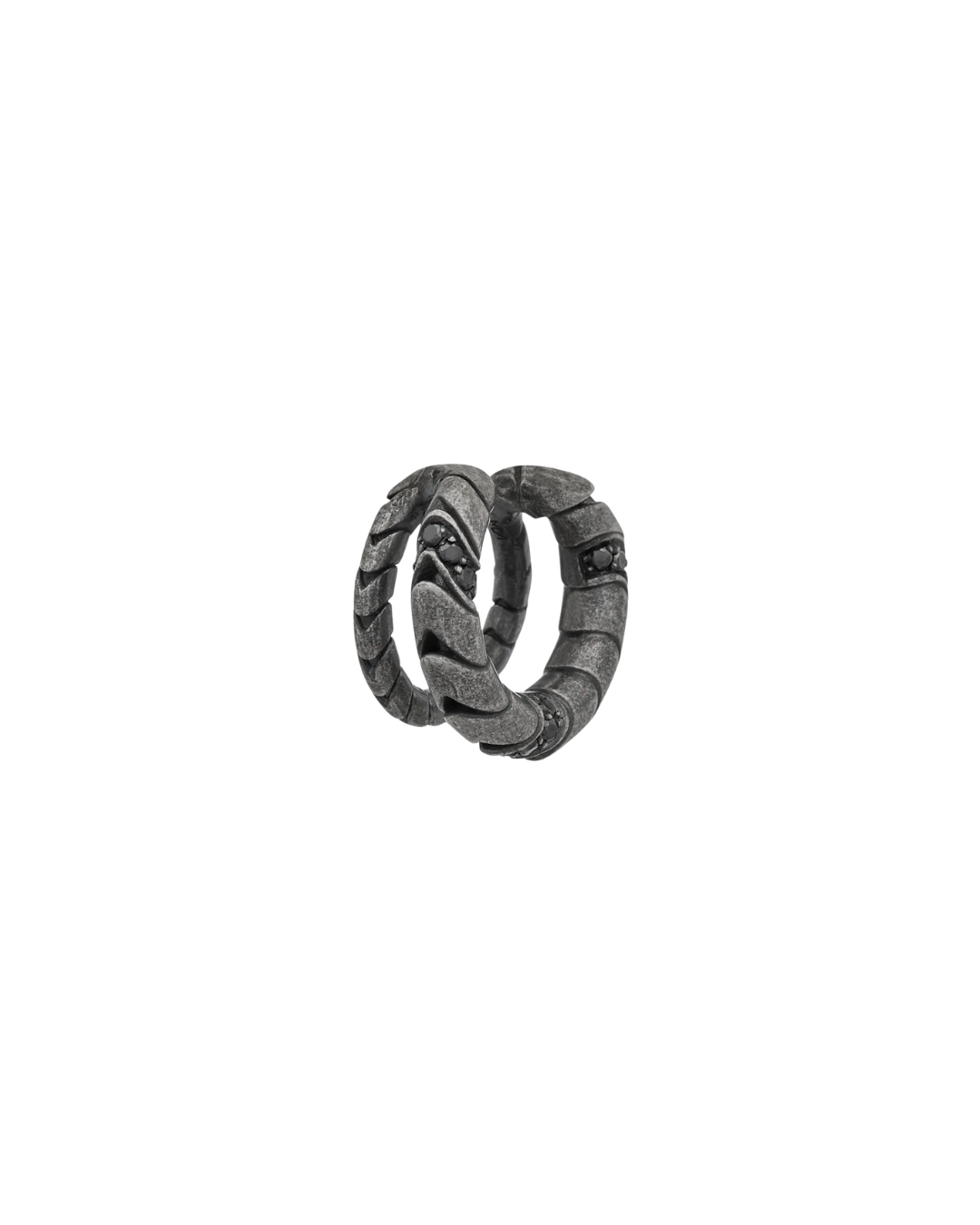 The Iron Snake Pavé Ear Cuff by Marco Dal Maso coils with bold intent. Crafted in oxidized sterling silver and set with black pavé diamonds, it brings a fierce, sculptural presence to the ear—no piercing required.