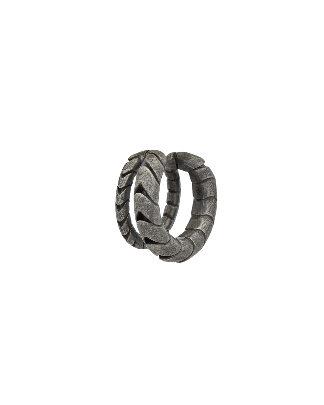 The Iron Snake Pavé Ear Cuff by Marco Dal Maso coils with bold intent. Crafted in oxidized sterling silver it brings a fierce, sculptural presence to the ear—no piercing required.