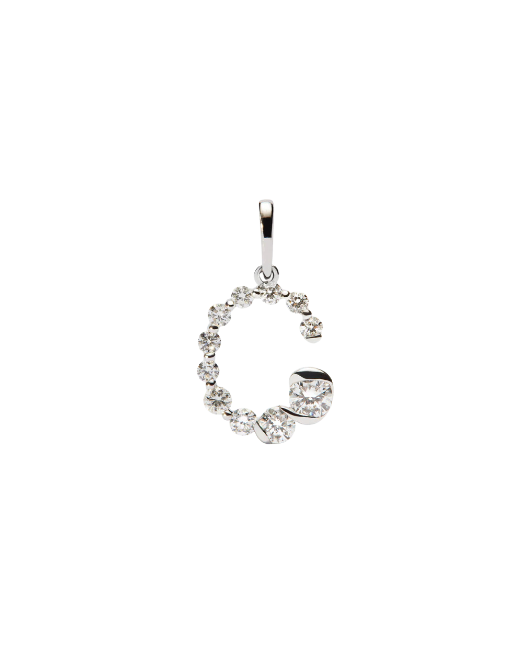 Radiant and refined, PDPAOLA 18K white gold Initial C pendant sparkles with 0.306 carats of lab grown F VS2 diamonds. A graceful fusion of ethical luxury and personal elegance, this timeless piece celebrates individuality with luminous charm—perfect for elevating everyday style with a signature touch of sophistication.