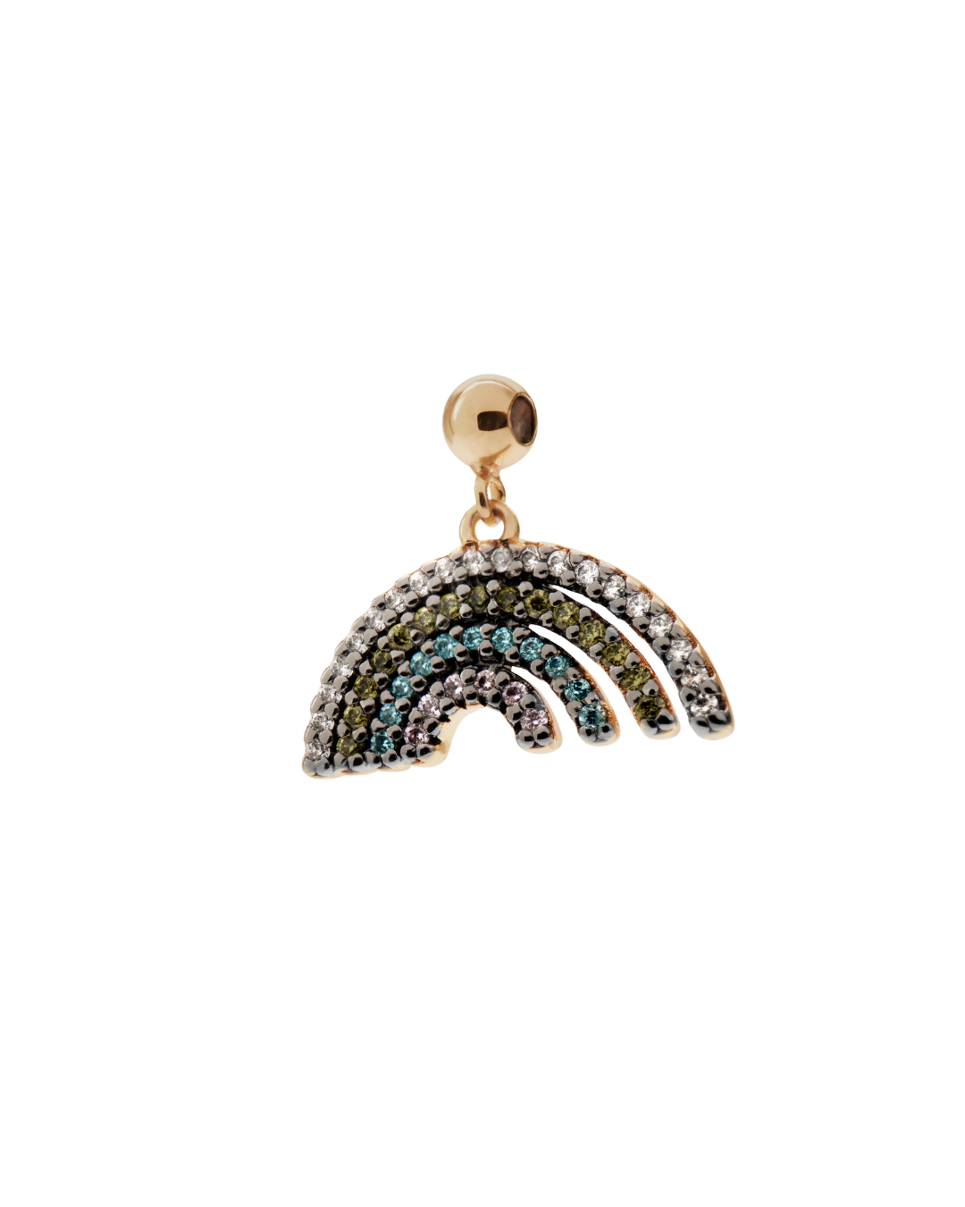 Radiating modern elegance, the PDPAOLA Rainbow Charm is crafted from 100% recycled 925 sterling silver and adorned with a rich 18K gold plating. Its delicate arc shimmers with luminous white zirconia, capturing light with every movement. A refined symbol of hope and beauty, it brings a graceful sparkle to any jewelry collection.