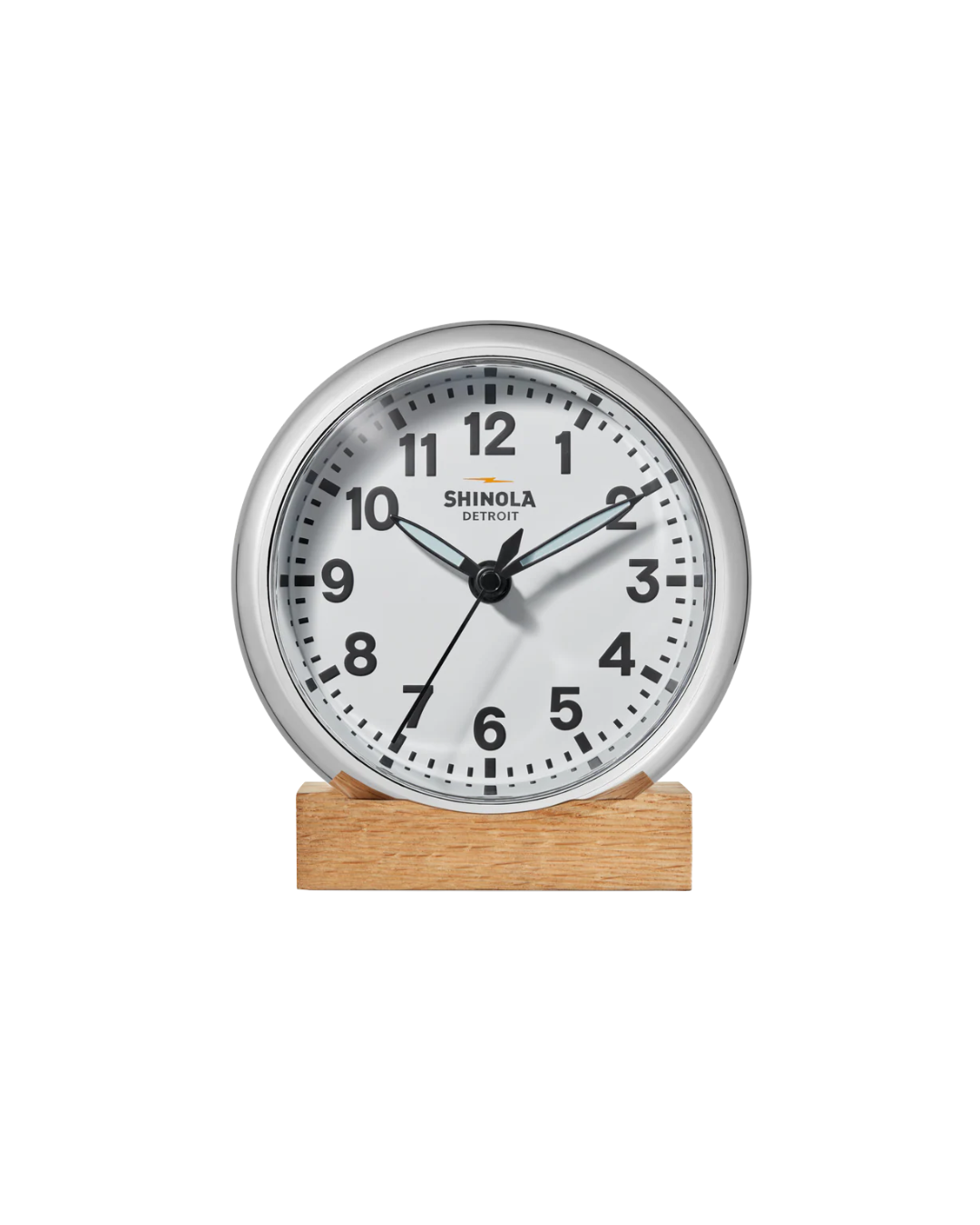 Clean, classic, and effortlessly refined, the 14″ Runwell Wall Clock in white and chrome brings timeless style to any space. Featuring a matte white dial, bold black Arabic numerals, and luminous hands, it offers sharp contrast and easy readability at a glance. Encased in a durable chrome finish, each clock is assembled in the USA with U.S. and imported parts and finished with a unique serial-numbered caseback—making every piece truly one of a kind.