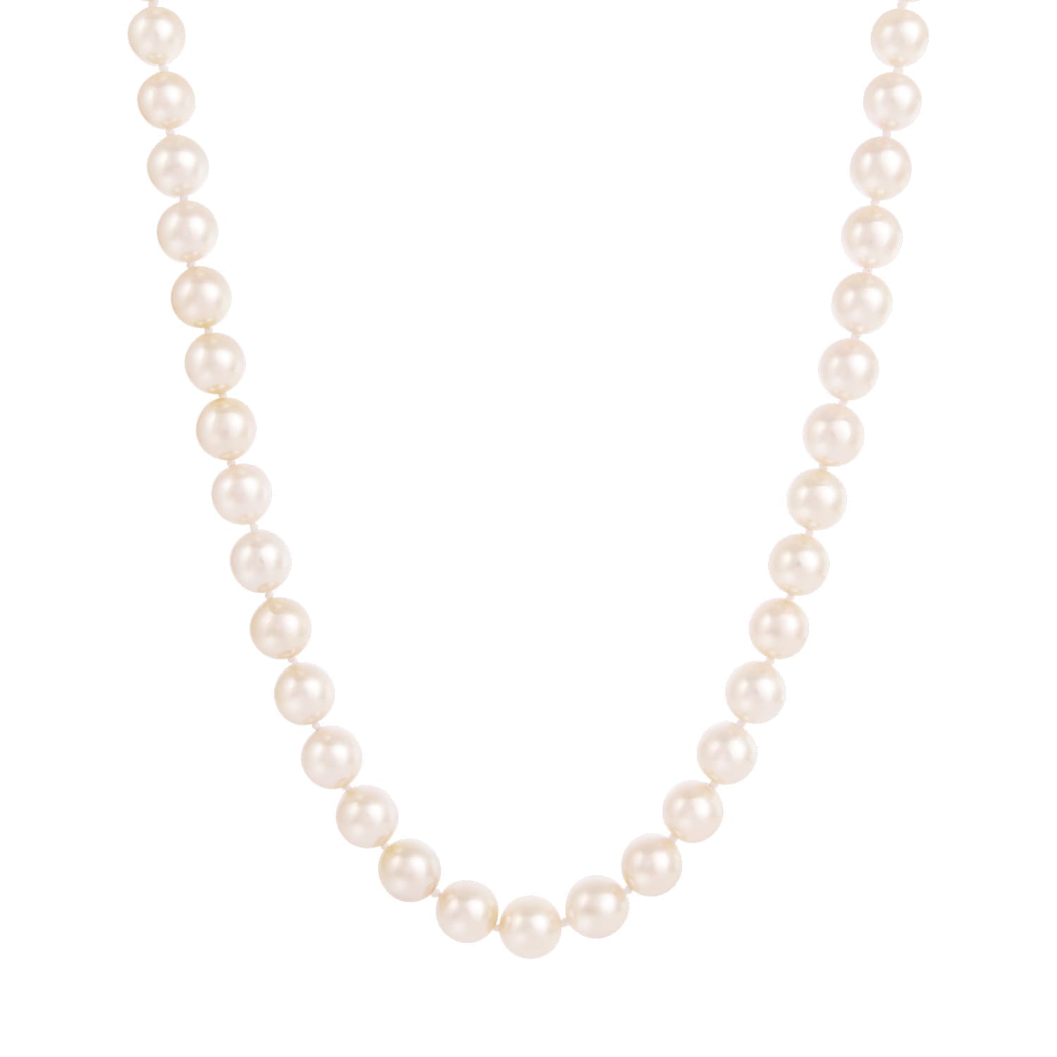 A classic strand of tapered AAA white Japanese Akoya pearls, ranging from 5-7 mm and individually hand-knotted for elegance and durability. Finished with a 14K yellow gold circle clasp, these luminous white pearls offer timeless sophistication.