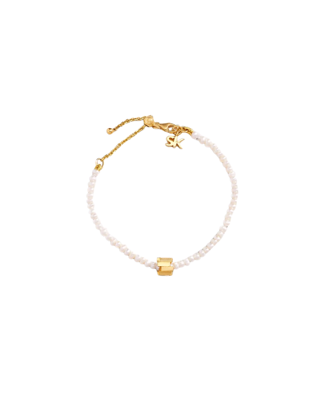 18K Yellow Gold One Of A Kind White Pearl Beaded Bracelet