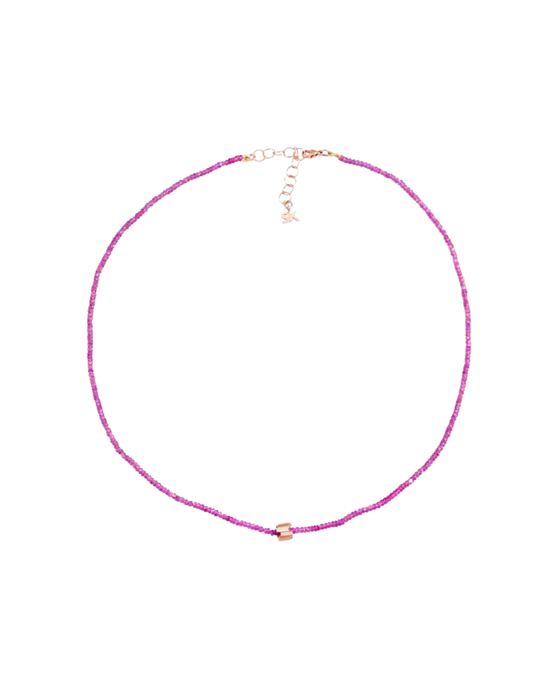 Suzanne Kalan�s 18K rose gold Infinite Beaded Pink Spinel necklace features luminous pink spinel beads accented with a solid gold rondelle center. This delicate, artfully designed piece radiates subtle elegance and modern sophistication. Perfect for layering or wearing solo, it adds a serene pop of color and refined luxury to any jewelry collection.