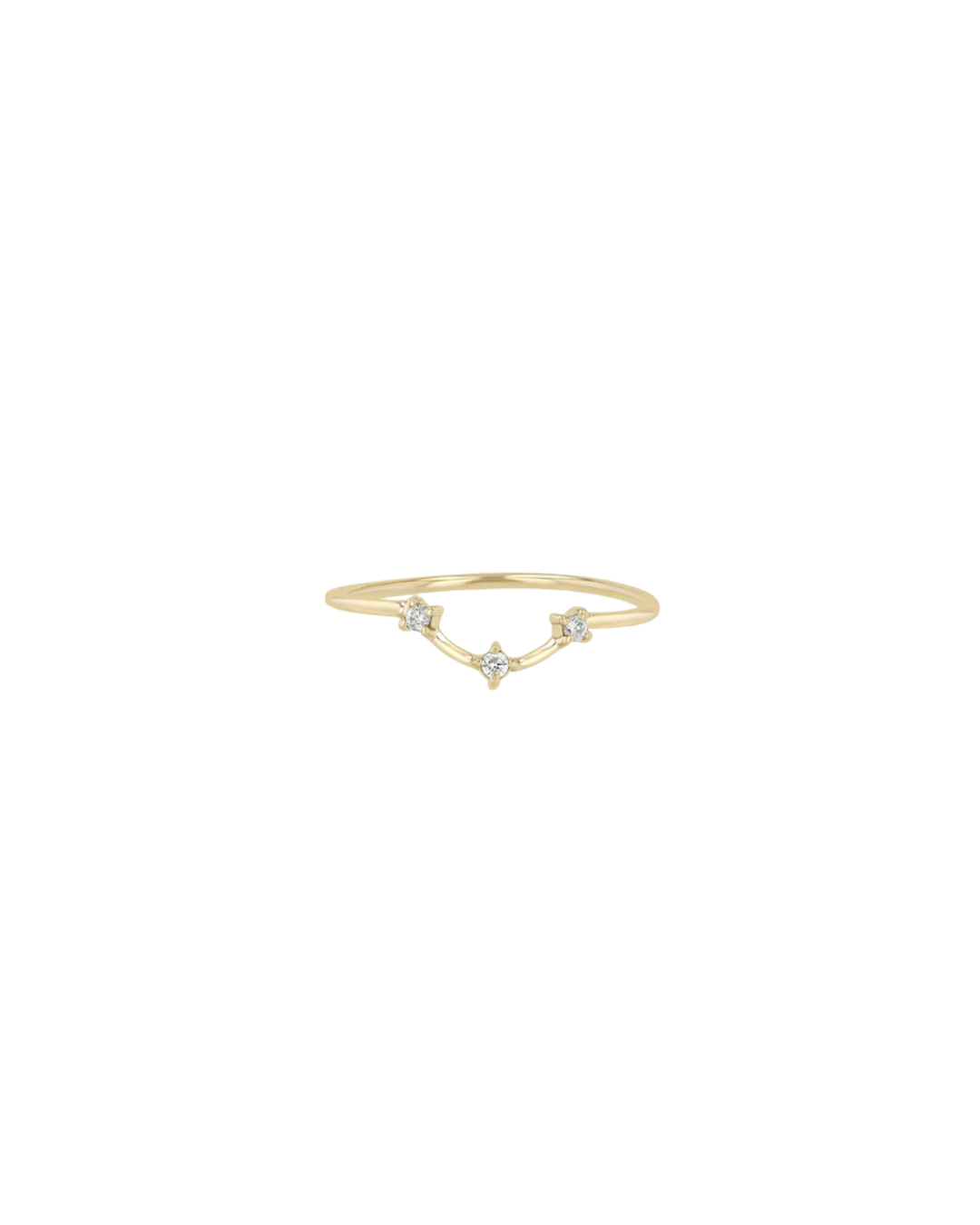 This 14K gold dash arc crown ring features delicate 1.5mm diamonds totaling 0.05CTW in a graceful curved silhouette. The four-prong setting enhances each stone’s brilliance, creating a refined, crown-like design. Perfect for stacking or wearing alone, it adds subtle sparkle with a modern, elegant touch.